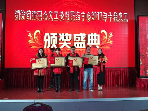 近日,“不忘初心 公益同心”暨“普洛得邦杯”潍坊滨海义工第三届年会在滨海海正大厦隆重举行。学院青年志愿者被评为“滨海义工优秀团体”,翁凯等十七名学生获得“优秀大学生义工”荣誉称号。