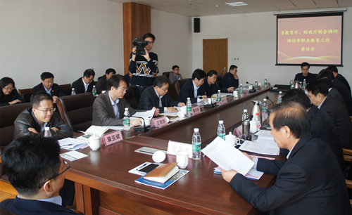 省厅联合调研组成员财政厅副厅长陈祥志,教育厅职业教育处处长梁斌言等人听取汇报后,同参会人员就职业教育创新发展试验区建设、财政资金投入职业教育、职业教育服务新旧动能转换、混合所有制办学、产教融合校合作等方面内容进行了深入探讨交流。