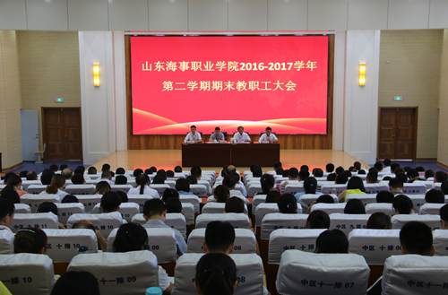 7月12日下午,院长、党委书记王敬良在图书馆报告厅主持召开学院2016-2017学年期末教职工大会,总结2017年上半年工作,部署暑期工作和下学期重点工作。副院长李振鹏、党委副书记徐立清、院长助理仉继航出席大会,大会由李振鹏同志主持。