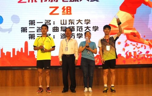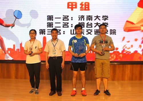 据了解,此次比赛分为甲组、乙组(专业组)两个小组进行,比赛形式包括男单、女单、男双、女双和混双,采取团体计分的形式。经过两天几轮激烈的角逐,济南大学、烟台大学、山东交通学院分获甲组前三名,山东大学、曲阜师范大学、潍坊学院获乙组前三名。