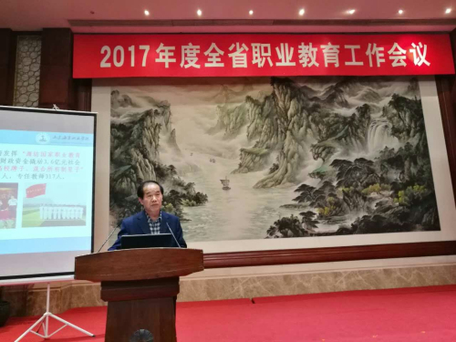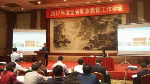 4月17-18日,2017年度全省职业教育工作会议在潍坊富华大酒店召开。省教育厅副厅长王坦、潍坊市副市长李平出席会议并讲话,职成教处处长梁斌言主持会议。学院院长王敬良出席会议并作经验交流发言。