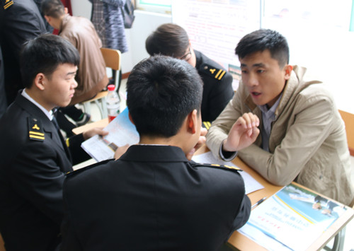 10月26日上午,山东海事职业学院2017届毕业生就业双选会在学院航空实训基地大厅举办。此次双选会吸引了北京鑫裕盛船舶管理有限公司、山东万声通讯实业有限公司、大连国际海事技术服务有限公司等来自全国的48家企业,招聘岗位涵盖了交通运输、电子通讯、数控机械、计算机、会计、市场营销、综合服务等多个领域,共提供就业岗位1738个,其中航海类专业就业岗位多达1198个。学院2017届毕业生为891人,招聘现场呈现毕业生供不应求的情况,尤其是航海类专业毕业生受到企业的普遍欢迎,现场签约率高达83%,在全球航运业整体不景气的情况下,就业率实现大幅逆增长。