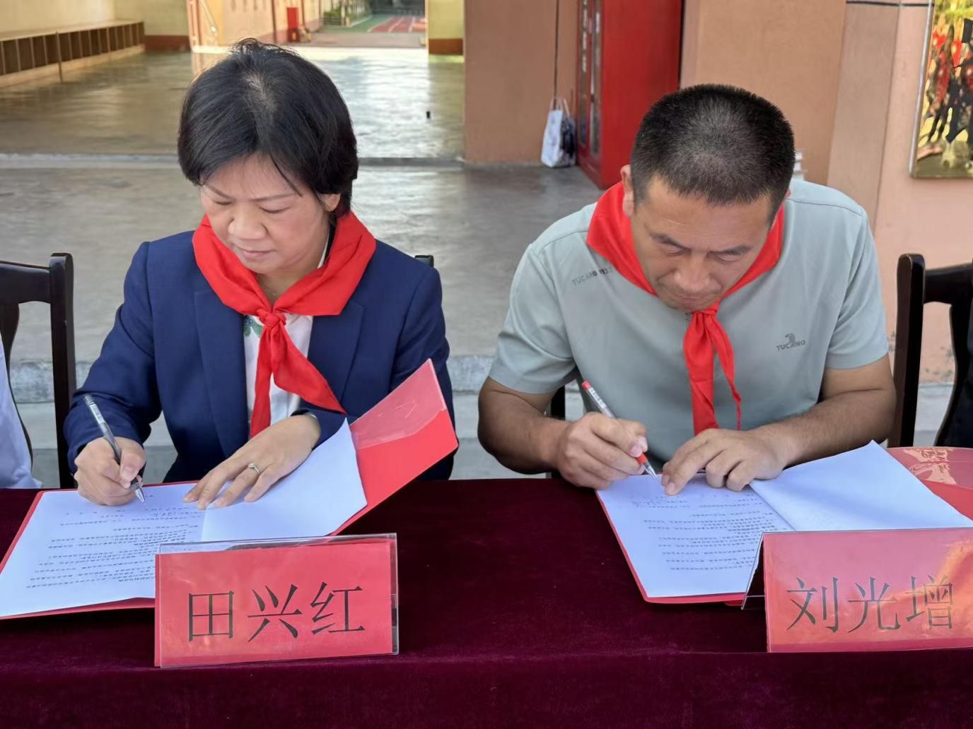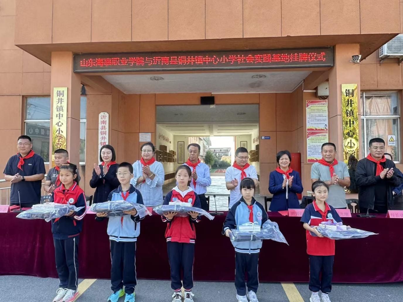 在与会人员的共同见证下,双方代表正式签订合作协议,标志着两校合作进入制度化、常态化的新阶段。随后,双方领导共同为“山东海事职业学院社会实践基地”揭牌。红绸揭开之际,现场掌声热烈,标志着连接高校与乡村小学的教育桥梁正式建立。