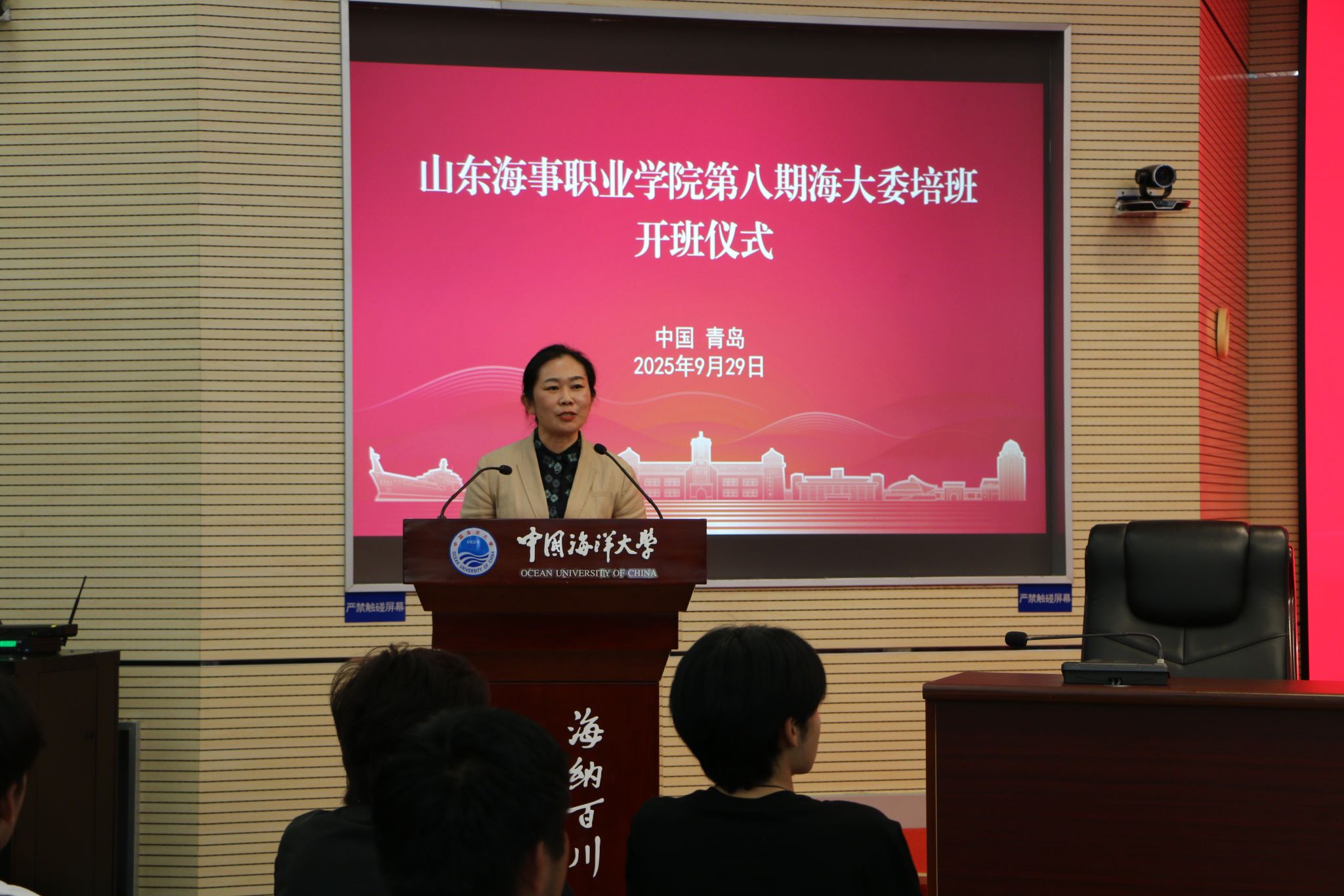 校长助理张娣在讲话中感谢中国海洋大学长期以来的大力支持,并对学员提出三点期望:一是以“空杯”心态潜心学习,二是以“求知”热情主动探索,三是以“笃行”姿态严于律己,希望同学们在求学路上脚踏实地、行稳致远。