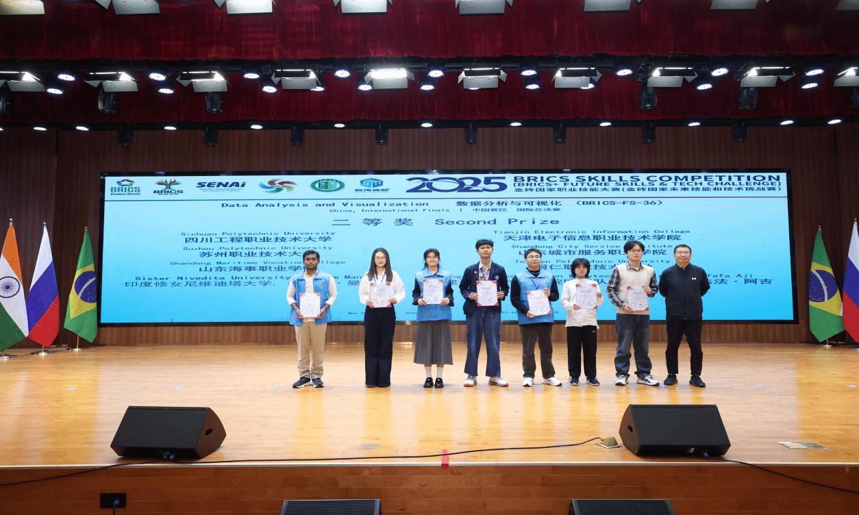 11月2日-6日,2025金砖国家职业技能大赛数据分析与可视化赛项国际总决赛在广东建设职业技术学院圆满落幕。本次大赛吸引了来自9个国家的137支参赛队伍同台竞技,经过激烈角逐,我校刘宝余老师指导的电子商务专业学生袁中良斩获二等奖,刘宝余老师荣获“国际优秀指导专家”。