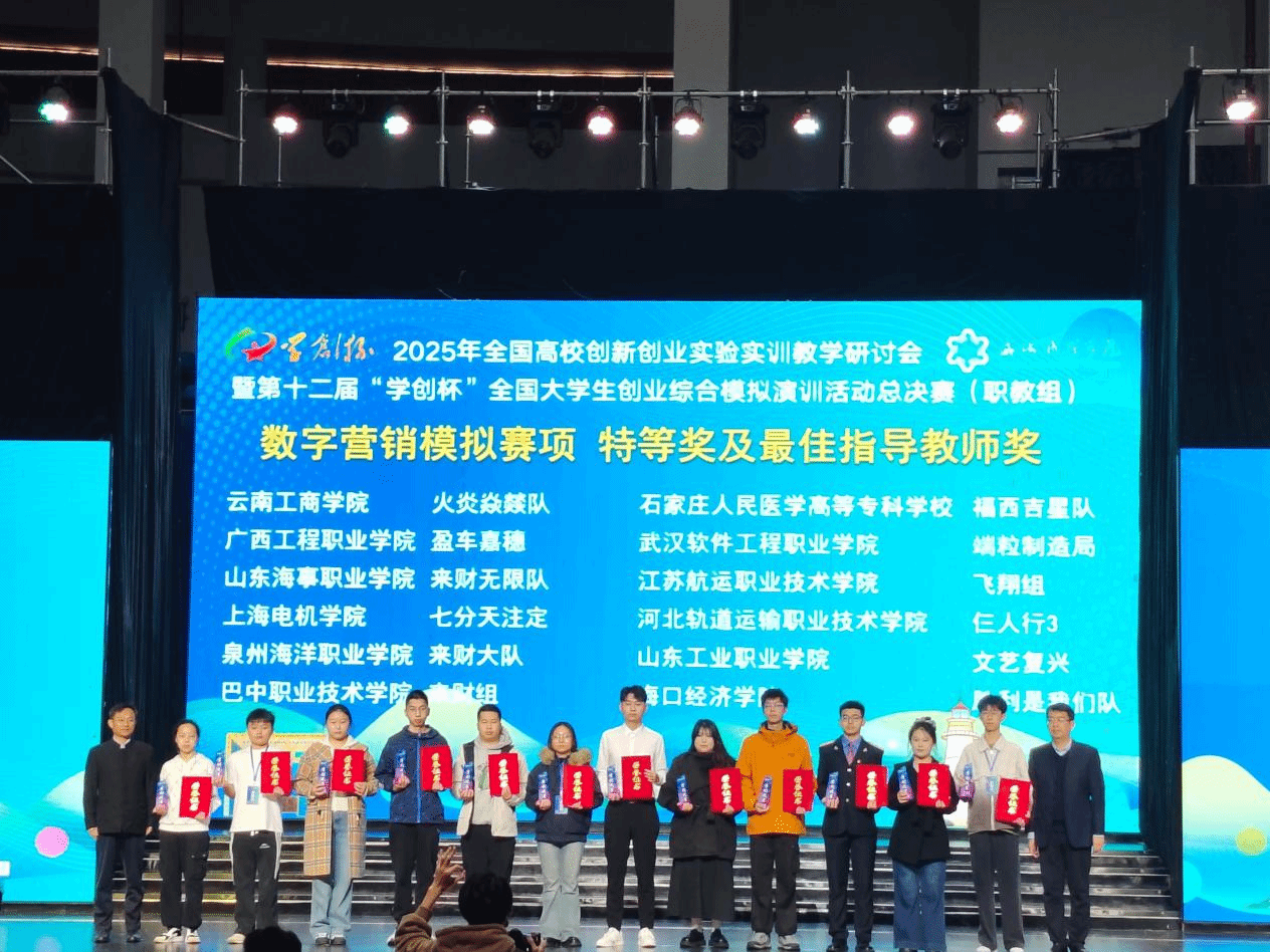 2025年11月8-9日,第十二届“学创杯”全国大学生创业综合大赛总决赛在威海职业学院拉开帷幕,我校3支代表队伍分别参加了财务决策、数字营销、创业综合模拟3个赛项的比赛,经过紧张而激烈的比赛,我校3支队伍最终斩获特等奖2项、一等奖1项。