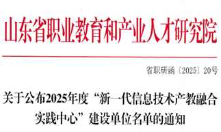 近日,山东省职业教育和产业人才研究院公布2025年度“新一代信息技术产教融合实践中心”建设单位名单,我校凭借鲜明的专业特色与扎实的建设基础成功入选。