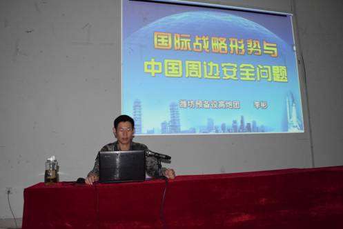 承训部队首长李彬及军训各连连长结合自己的切身感受,为大家上了一堂生动的国防教育课。教官们详细介绍了我国现有的国防实力及今后的发展、国家安全形势等问题,并通过我国与世界强国的经济和军事实力的对比分析,指出了我国面临的潜在威胁和挑战。讲座现场,教官慷慨陈词,同学们聚精会神、秩序井然。