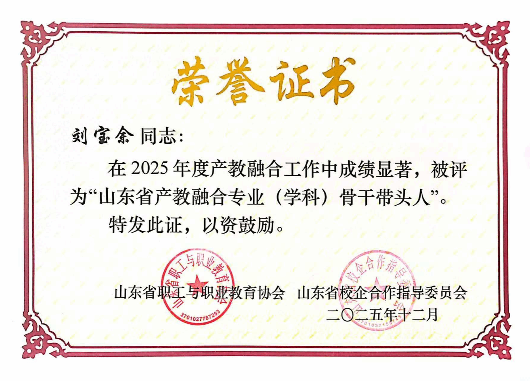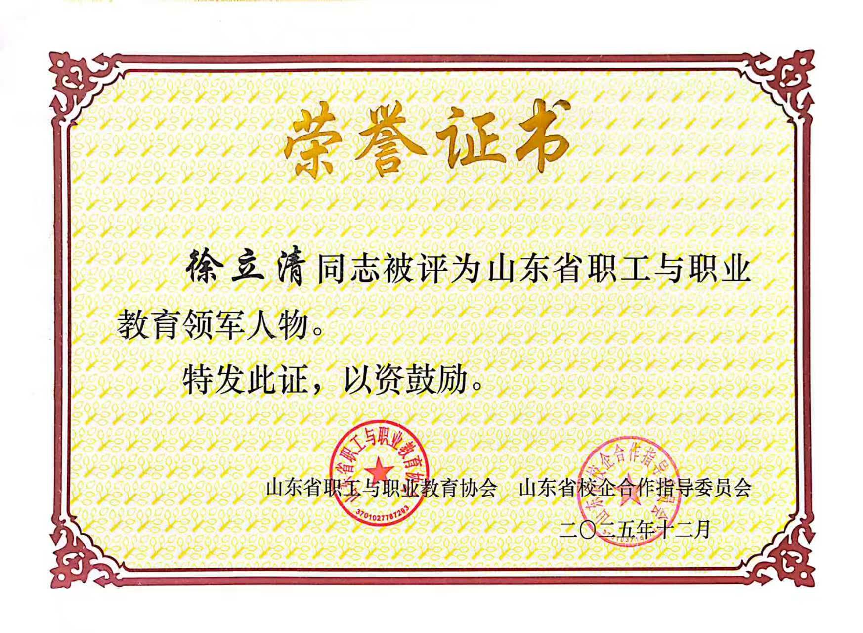 近日,教育科技人才一体推进创新实践交流会暨山东省职工与职业教育协会年会在济南召开。会上,学校荣获多项荣誉,校长徐立清同志获评山东省职工与职业教育领军人物,教师刘宝余同志获评山东省产教融合专业(学科)骨干带头人,学校电子商务专业获评山东省产教融合示范性品牌专业。