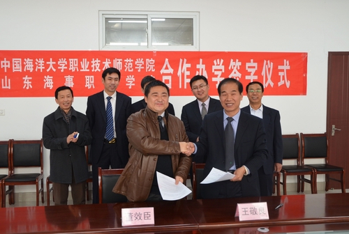 2月2日,中国海洋大学职业技术师范学院、继续教育学院与山东海事职业学院就港口与航运管理、国际邮轮乘务两个试点专业举行合作办学签字仪式。中国海洋大学职业技术师范学院、继续教育学院院长董效臣、副院长刘杰,山东海事职业学院院长王敬良及院长助理徐立清、仉继航等两校领导出席了签约仪式。