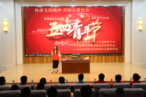 5月4日晚,学院邀请到“山东道德模范” “山东好人”毛金鹏先生到我院给广大团员青年做报告。激发和鼓励广大团员青年积极投身志愿服务,认真学习专业理论知识和技能,激扬青春砥砺奋斗,积极为滨海发展和建设添砖加瓦。(团委、宣传统战处)
