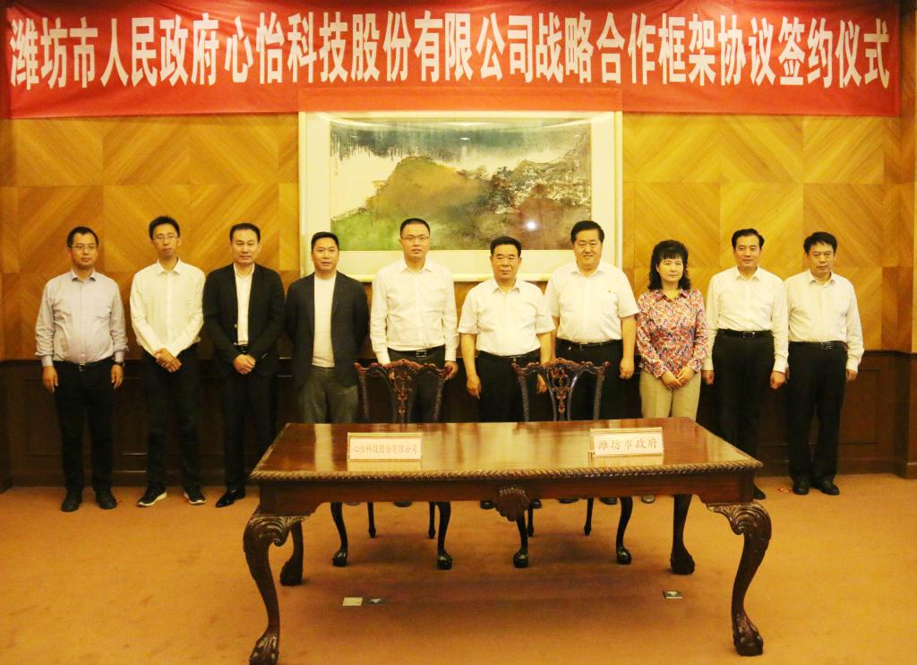 6月6日,潍坊市政府与心怡科技股份有限公司签署战略合作框架协议,共建混合所有制山东海洋技术大学,发展与大学建设相关联的现代仓储和智能产业。市委书记、市人大常委会主任刘曙光,市委常委、秘书长刘建国出席签约仪式,副市长李平代表潍坊市政府与心怡科技股份有限公司董事长邢玮签署了战略合作框架协议。山东海事职业学院院长、山东海洋技术大学筹建办主任王敬良参加活动。