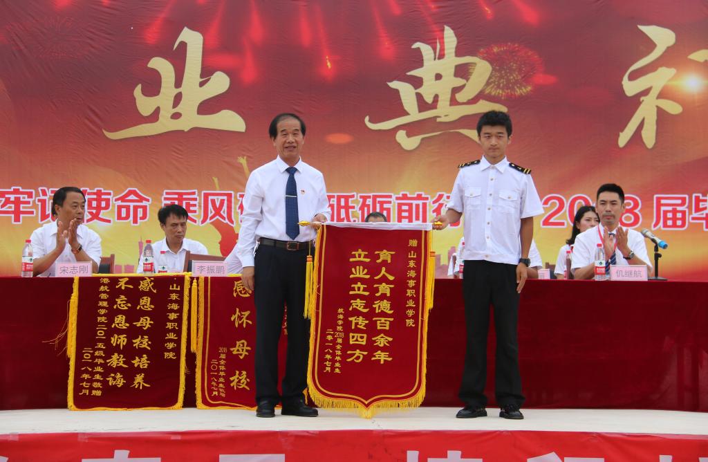 典礼在庄严的国歌声中拉开序幕。副院长李振鹏宣读了山东海事职业学院优秀毕业生表彰决定。