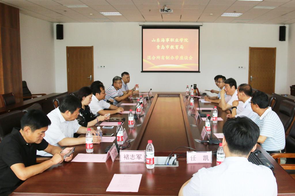 7月18日上午,青岛市教育局总督学李岷率领由青岛市教育局职教处处长李一鸥、青岛烹饪职业学校校长吕雪梅、青岛电子学校校长崔西展、青岛商务学校校长曲可夫、青岛城市管理职业学校校长赵芳亮、青岛房产学校校长刘合森等人组成的考察团来学院考察交流混合所有制办学。潍坊市市委教育工委副书记李广敬,学院党委书记、院长王敬良,院长助理宋志刚、研究室主任郭素森等人出席了相关考察交流活动。