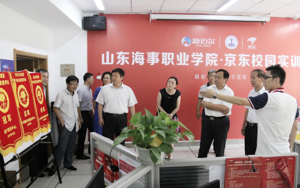 青岛市教育局考察团一行在学院图书馆一楼会议室观看了学院宣传片以及介绍学院混合所有制办学情况的专题视频。随后,青岛市教育局考察团一行在潍坊市市委教育工委副书记李广敬和学院党委书记、院长王敬良等人的陪同下现场考察了学院航空实训基地、京东校园实训中心等场所。