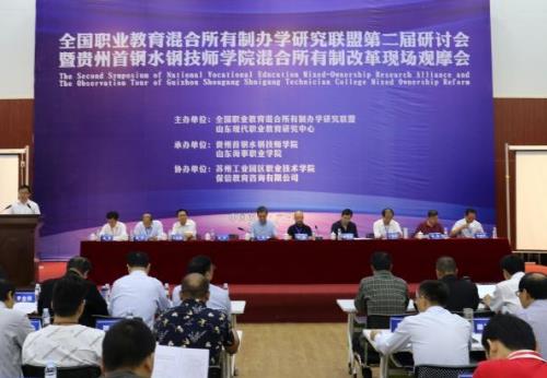 8月12-13日,全国职业教育混合所有制办学研究联盟(以下简称“联盟”)第二届研讨会暨贵州首钢水钢技师学院混合所有制改革现场观摩会在贵州六盘水召开,来自全国各地19个省市区的教育行政部门、职业院校、行业企业的领导、专家、企业家共200余人齐聚贵州水钢技师学院,共同研讨“职业院校混合所有制改革”的路径。本次会议由全国职业教育混合所有制办学研究联盟、山东现代职业教育研究中心主办,贵州首钢水钢技师学院(第一届联盟副理事长单位)、山东海事职业学院(第一届联盟理事长,秘书长单位)承办,苏州工业园区职业技术学院、保信教育咨询有限公司等协办。山东海事职业学院党委书记、院长王敬良作为联盟首届理事长、名誉理事长出席大会,学院院长助理宋志刚、研究室主任郭素森等参加会议。