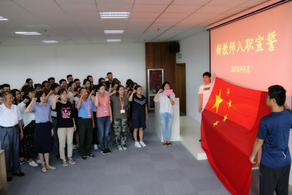 座谈会后,老教师代表王春艳老师带领大家进行了入职宣誓仪式。“我宣誓,我志愿做一名合格的人民教师,忠诚党的教育事业,履行教师神圣职责,恪守‘积跬步,至千里’校训,弘扬‘崇德尚能,教之有道’教风,遵纪守法,立德树人,热爱学校,敬业爱生,严谨治学,勇于创新,团结同事,努力工作,引领正能量,争创新业绩,为学生成才和学院发展贡献自己的智慧和力量!”郑重的宣誓词,是责任,也是承诺,督促着新进教师在今后的工作中爱岗敬业,为社会培养优秀人才。