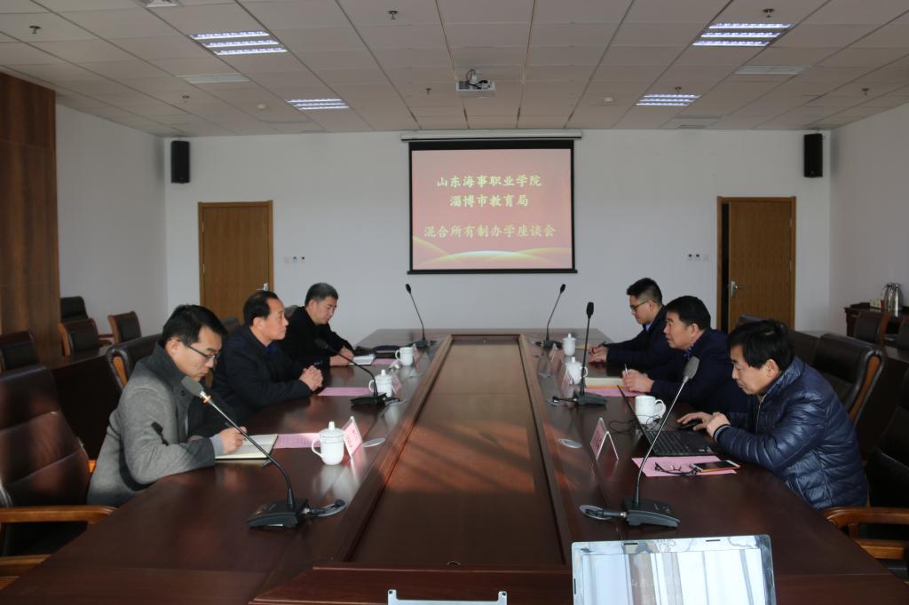 12月18日,淄博市委教育工委副书记、淄博市市教育局党委副书记、副局长何向东,淄博市教育局职级办主任马永,淄博市教育局人事科副科长赵杰一行来学院考察交流混合所有制办学。学院党委书记、院长王敬良,副院长李振鹏,研究室主任郭素森等参加了座谈会。