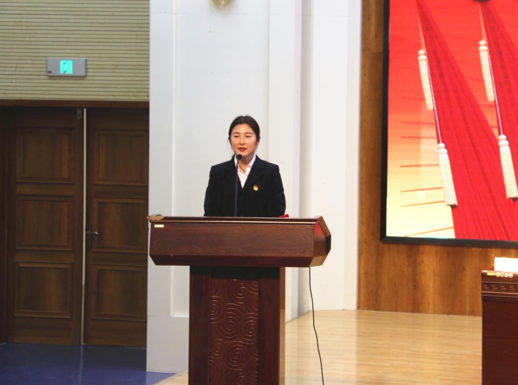 学生代表赵雨婷上台发言,她首先感谢学院领导的关怀和辅导员、任课老师的辛勤栽培,并表示,今天的掌声和鲜花只代表着过去,今后学习和工作需要更加努力。她呼吁全体同学,从现在开始,为二十年后的成功做准备,不忘初心、砥砺前行。