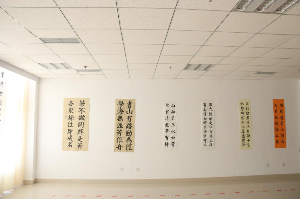 近日,在纪念五四运动100周年,中华人民共和国成立70周年之际,“山东省第一届高校社团书法书画交流展”在学院图书馆成功举办。5月13日,学院党委书记、院长王敬良,党委副书记、副院长徐立清,副院长李振鹏、仉继航,院长助理宋志刚,各二级学院党支部书记以及辅导员老师前来参观。
