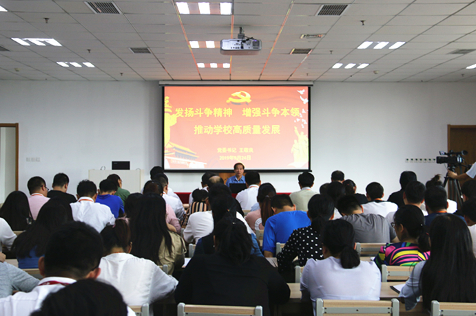 9月24日,学校在图书馆第二信息化教室举行了“发扬斗争精神,增强斗争本领,推动学校高质量发展”主题党课。党课由学校党委书记、校长王敬良主讲,学校全体教职工党员共同接受党课教育。