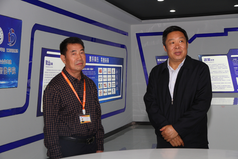张主任一行听取了李振鹏校长关于学校发展情况和教育改革成果的详细汇报,详细了解了学校混合所有制办学情况,细致询问了学校目前的专业建设、师资培养状况,并对学校混合所有制办学及校企合作办学成果表示高度赞肯。