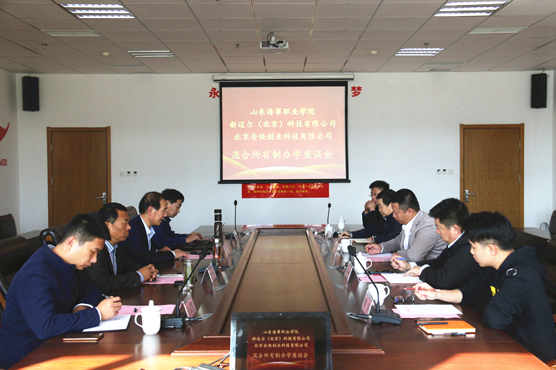 10月29日,安快集团董事长张海峰,北京安快创业科技有限公司执行董事牛志美等一行四人来学校考察研讨校企合作办学路径。全国职业教育混合所有制研究联盟名誉理事长,学校党委书记、校长王敬良,副校长宋志刚,全国职业教育混合所有制研究联盟秘书长,研究室主任郭素森等出席座谈会。