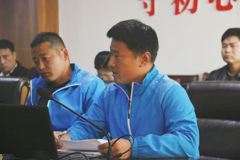 教练员王大伟老师对比赛当中出现的典型事迹进行汇报