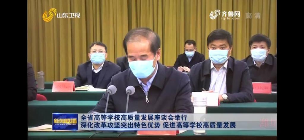 4月24日下午,全省高等学校高质量发展座谈会在济南举行,深入学习贯彻习近平总书记关于高等教育高质量发展的重要论述,听取全省高校改革发展有关情况汇报,研究解决具体问题,安排部署下一步工作。省委书记刘家义出席座谈会并讲话。学校校长王敬良在会上作题为《深化混合所有制改革 激发办学活力》专题发言,就学校混合所有制办学主要做法、主要问题及混合制办学有关建议进行详细汇报。