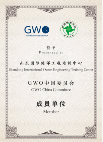 近日,经GWO中国委员会审核并批准,我校筹建的山东国际海洋工程培训中心(OPITO)现在正式加入GWO中国委员会,成为其重要的一员。作为GWO中国委员会的成员单位,中心将借助GWO中国委员会强大的资源优势加速推进国际海洋工程培训基地高质运行,提高国内风能企业人员安全技术水平,有效助力新时代“海洋强国”战略实施。