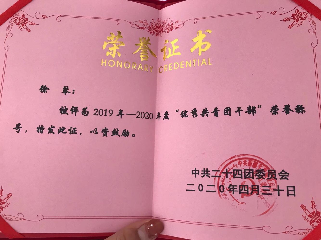 近日,去年奔赴西部志愿服务的我校优秀学生徐琴同学,因表现突出工作积极被评为团场“最美志愿者”、“优秀共青团干部”,并且在志愿者年度考核中荣获 新师市级“优秀志愿者”荣誉称号。