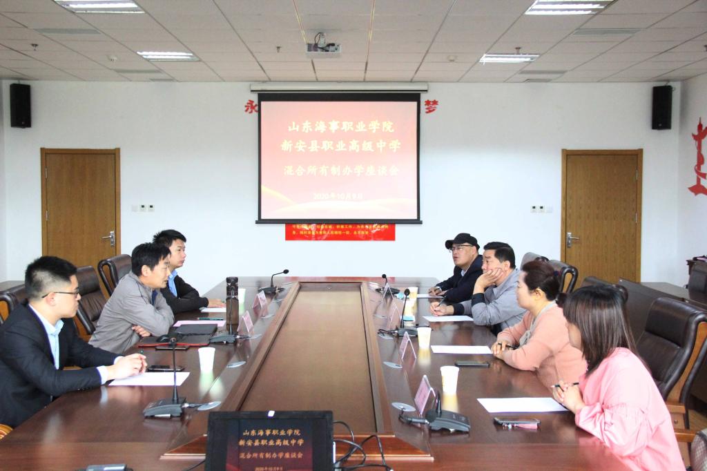 10月9日上午,山东交通学院航运学院院长王明雨等一行3人、新安县职业高级中学校长付小平一行4人先后到学校研讨交流混合所有制办学经验。学校副院长吕明、研究室主任郭素森等出席座谈交流。