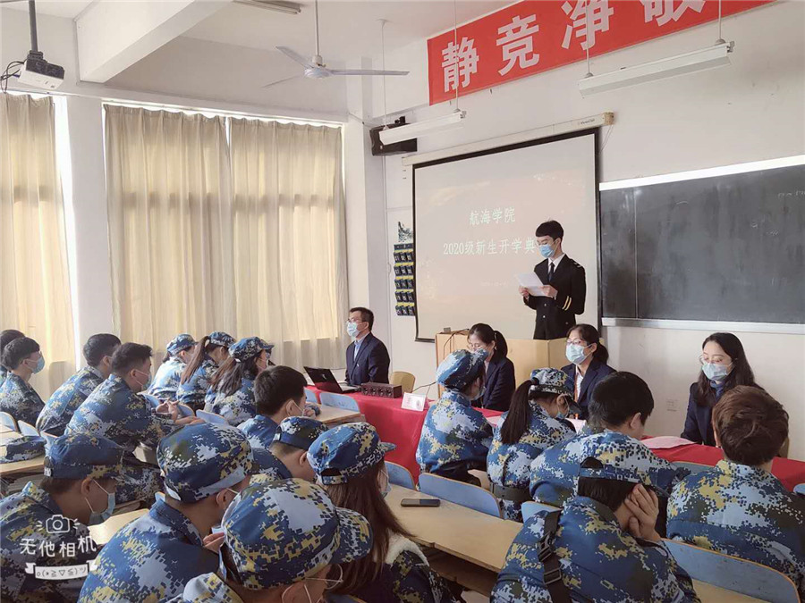 扬帆破浪踏足行,奋发向上勇攀登。10月15日上午,航海学院组织召开2020级新生开学典礼。根据疫情防控需要,为避免大量人员聚集,今年的开学典礼航海学院采用了分散进行的方式开展,分为1个主会场和5个分会场同步进行。学校副校长仉继航、副校长/航海学院院长吕明、教务处副处长李海燕、学生处副处长王冠伟、航海学院副院长李晓伟参加了主会场的开学典礼仪式。 团委、学生处、教务处和航海学院的其他几位中层干部参加了分会场的开学典礼仪式。