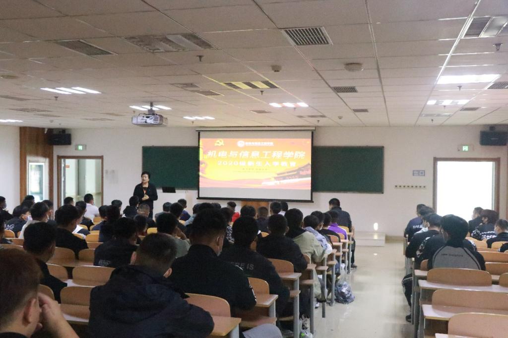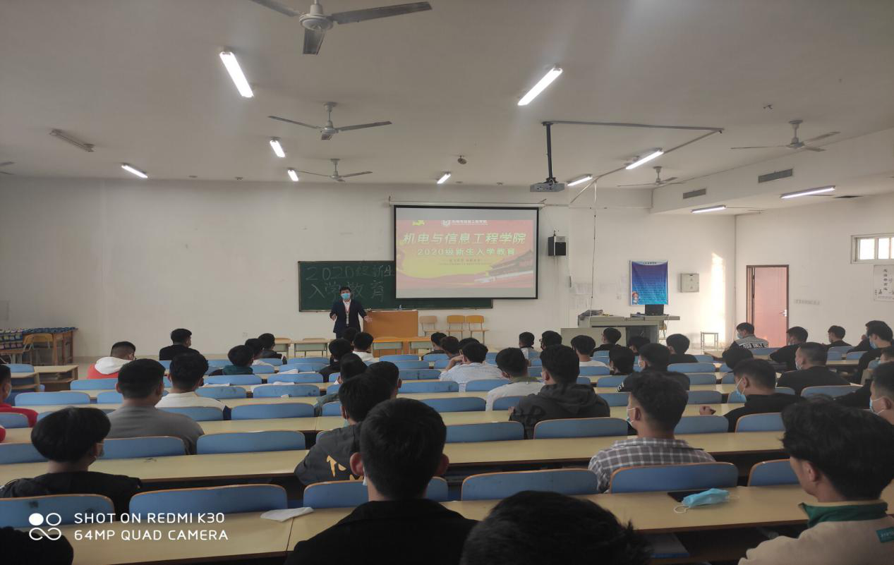 为教育引导2020级新生开好学、起稳步,尽快适应学校的学习生活,10月13日,机电与信息工程学院在第二信息化室、1518室、2518室三个大教室,同时开展了三场2020级新生入学教育。教育活动由机电与信息工程学院党总支臧书记、副院长潘春兰、院长助理郑晓龙主讲,2020级新生共计430人参加了本次教育活动。