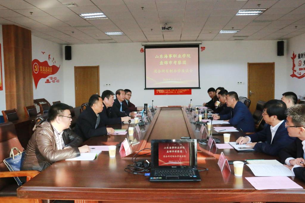 2020年11月11日上午,盘锦市教育局局长宋全明、市委教育资源整合办公室副主任杨壮力、财政局副局长刘可佳、盘锦职业技术学院副院长张洪福等一行9人组成的考察团到学校交流混合所有制办学改革。潍坊市教育局二级调研员李广敬、学校校长王敬良、副校长宋志刚等出席活动。