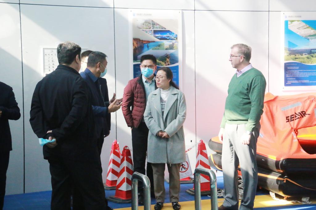 座谈会上,校长王敬良对考察团一行的到来表示欢迎,并结合国家职业教育发展现状,详细介绍了山东海事职业学院及山东化工职业学院两所院校的混改情况及办学建设发展情况。并就如何积极引入市场机制,推进职业院校多元主体办学,激发办学活力和发展动力与考察团成员进行了一一交流。党政办公室副主任王德帅就山东海事职业学院混合所有制发展历程、办学成果、办学特色作了详尽介绍。来宾对学校“山海模式”发展现状表示极大赞肯,并希望通过此次来访学习借鉴混合所有制办学先进经验,增强其属地混合所有制办学以及校企合作能力。
