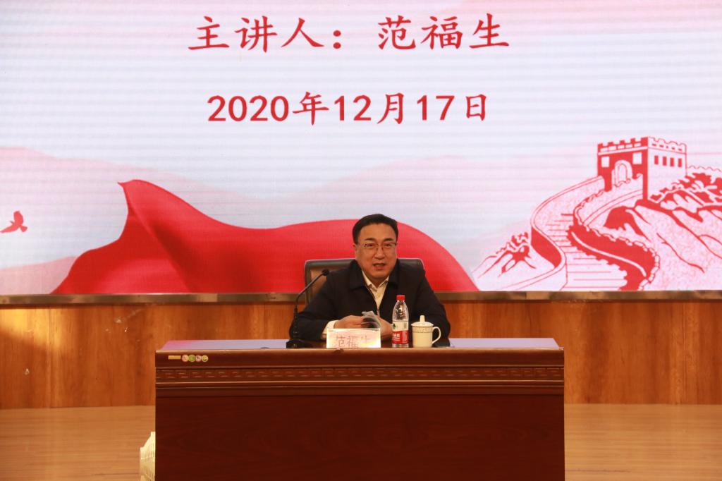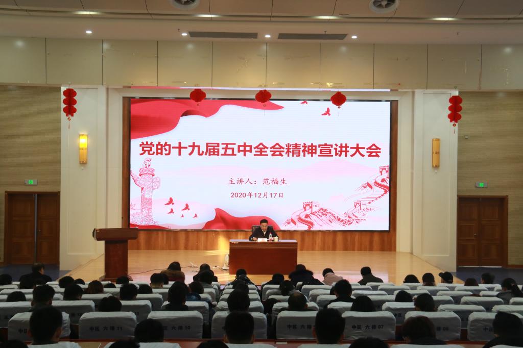 12月17日,潍坊市人大常委会副主任、党组成员范福生至学校作党的十九届五中全会精神宣讲报告。学校校长王敬良主持会议,副校长张庆会、吕明出席,全体教职工及在校学生党员共计300余人参加了本次宣讲会。