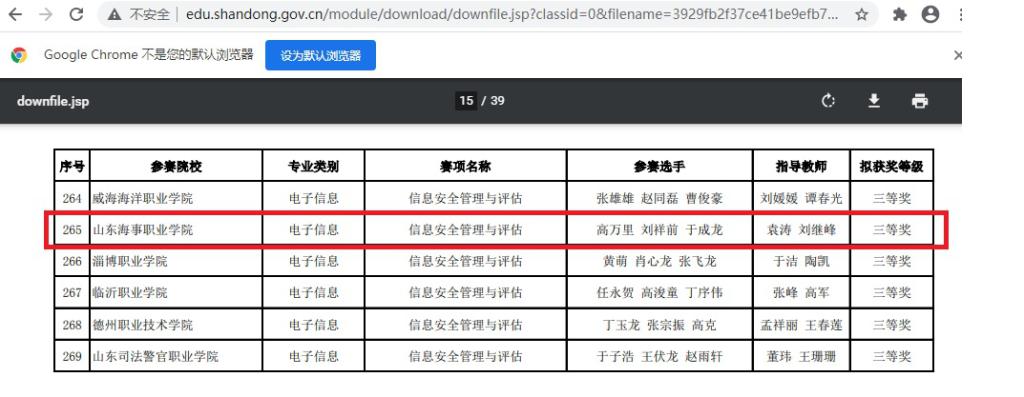 2020年山东省职业院校技能大赛 “信息安全管理与评估”赛项于12月18-19日在聊城职业技术学院举行,全省共有28所职业院校报名参加,我校荣获三等奖。