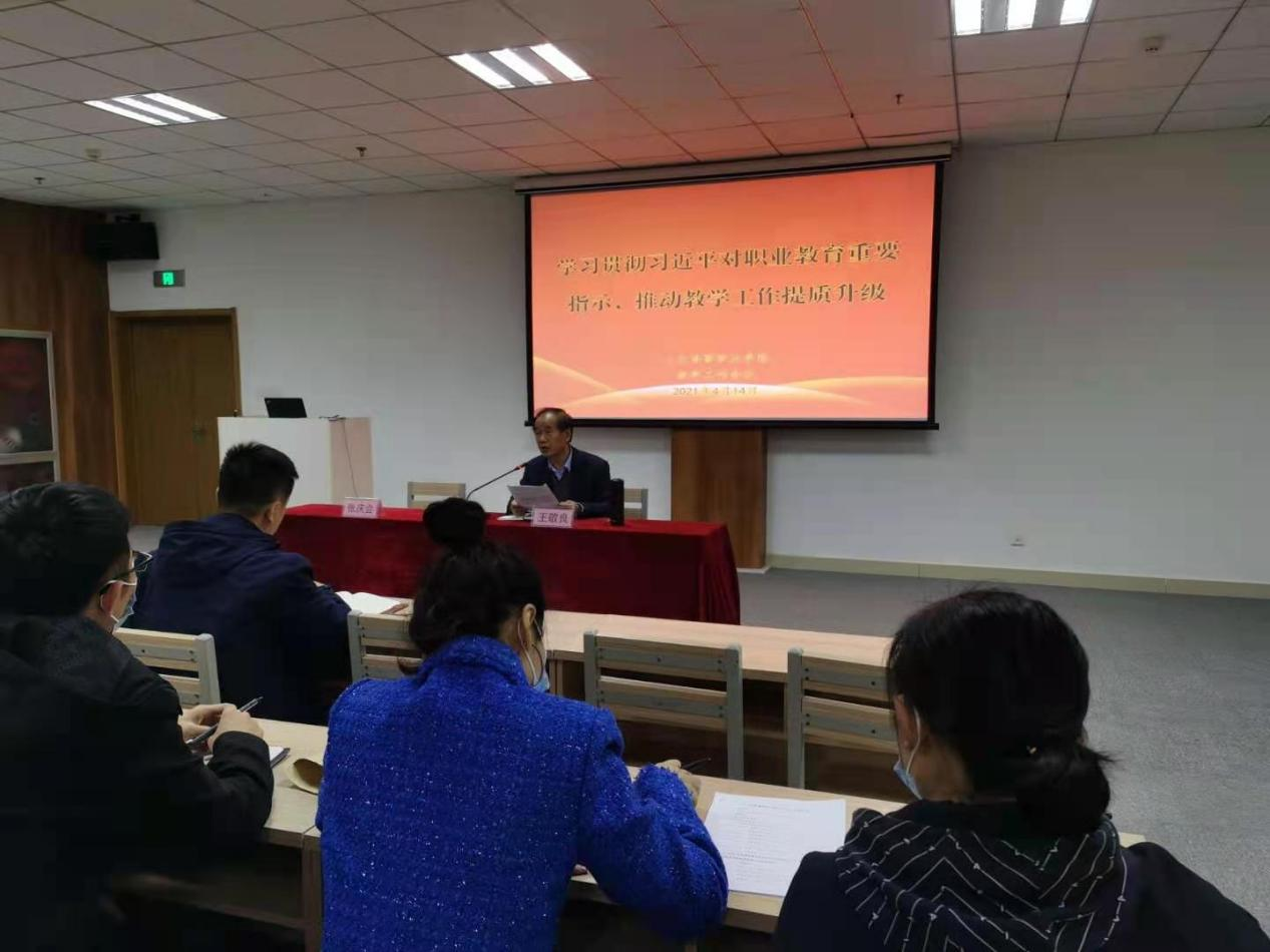 2021年4月14日下午,校长王敬良主持召开“学习贯彻习近平对职业教育重要指示,推动教学工作提质升级”专题教学会议,各教学单位负责人、教研部主任以上负责人、图书馆、现代教育技术中心、创新创业指导中心负责人参加会议,学校副校长张庆会主持会议。