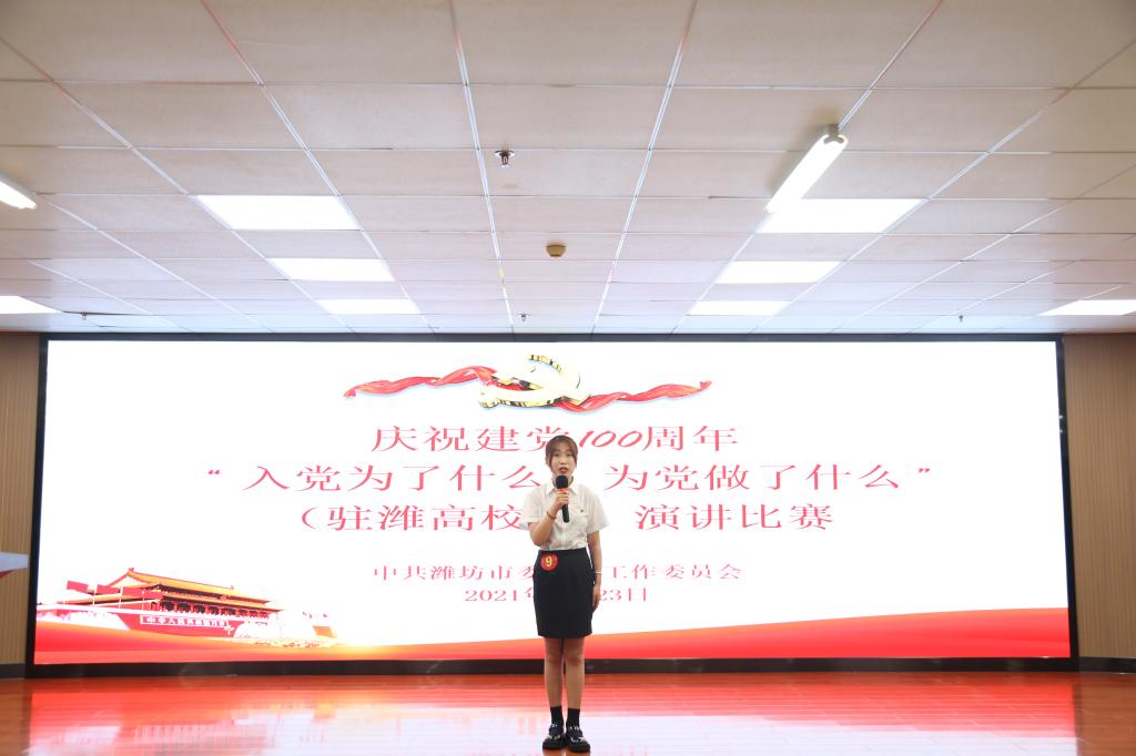 6月23日,由中共潍坊市委教育工委组织举办的“入党为了什么,为党做了什么”主题演讲比赛中,我校教师代表季丹丹和学生代表马圣杰分别荣获教师组和学生组三等奖。