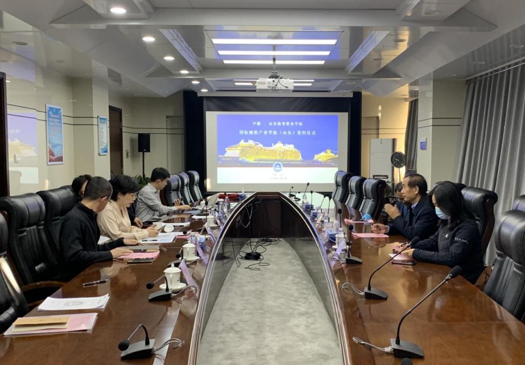 12月24日上午,我校与中船舰客教育科技(北京)有限公司共建产业学院战略合作签约仪式在中国船舶工业综合技术经济研究院六楼中厅会议室举行。中船舰客教育科技(北京)有限公司总经理鲁慧娟、校企合作部部长夏海滨、校企合作部华北区顾问张茂友、校企合作部规划顾问于泓涵,山东海事职业学院校长王敬良、副校长宋志刚、邮轮游艇学院院长张娣出席了本次签约仪式。张茂友主持了签约仪式与工作沟通会。