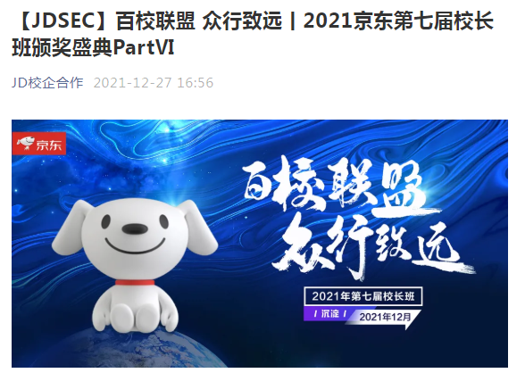 我校京东校园实训中心在2021年“双十一”、“双十二”活动中,全体师生认真筹备,积极备战,最终获得了京东全国校企在线客服业绩第1名,并在京东举办的“第七届校长班颁奖盛典”上荣获“优秀校企合作院校”称号,被授予“年度标杆奖”。