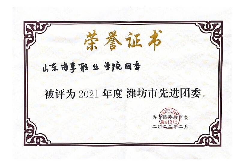 2月22日,潍坊团市委印发《共青团潍坊市委2021年度工作评价表扬通报名单》。我校团委被授予“2021年度潍坊市先进团委”荣誉称号。
