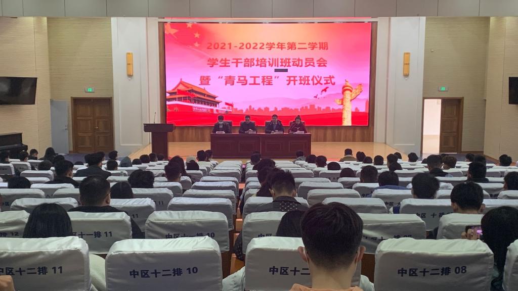 2月28日下午,学校2021-2022学年第二学期学生骨干培训班动员会暨“青马工程”开班仪式在图书馆报告厅举行,副校长仉继航、学生工作处副主任王冠伟、学生工作处及团委其他相关负责人出席会议。