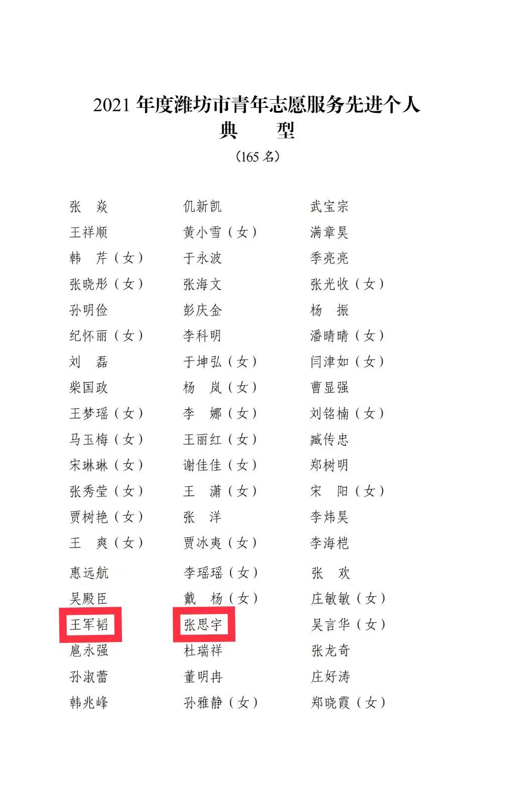 近日,共青团潍坊市委下发《关于2021年度全市青年志愿服务先进集体和先进个人典型的通报》,我校航海学院“星火”志愿者服务队荣获“2021年度潍坊市青年志愿服务先进集体典型”荣誉称号;机电工程学院王军韬老师和电商学院张思宇同学荣获“2021年度潍坊市青年志愿服务先进个人典型”荣誉称号。