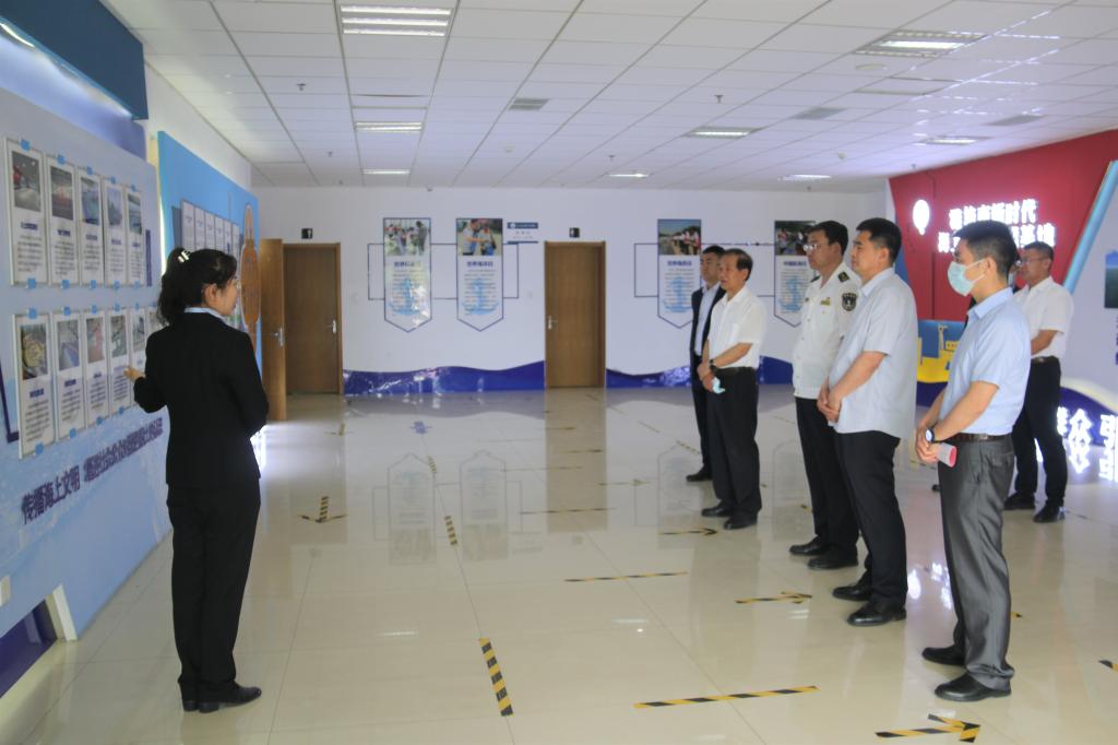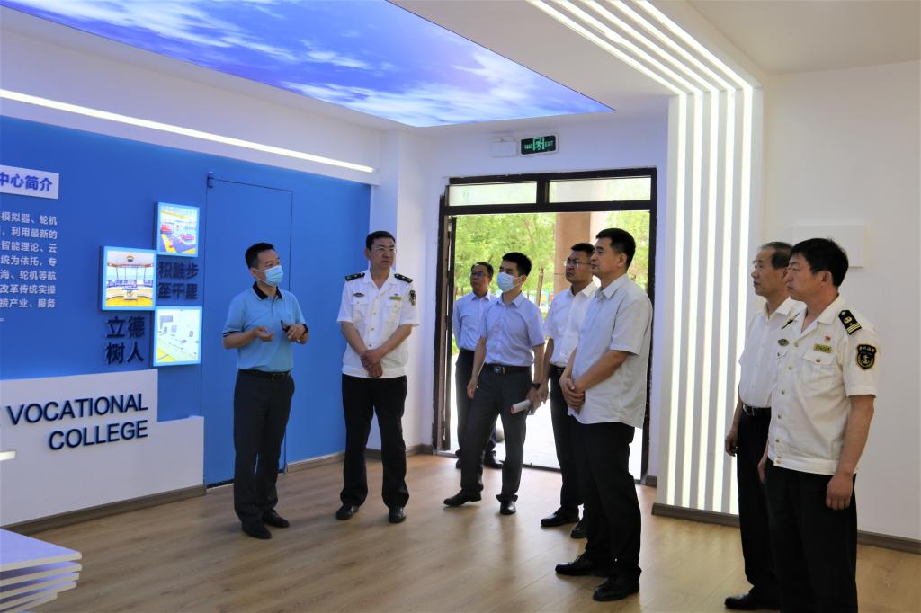 最后,潍坊海事局局长柳强,华洋海事中心有限公司副总经理杨善利等一行参观了学校新时代海上文明实践基地,国际海洋工程实训中心和航海模拟仿真实训基地。