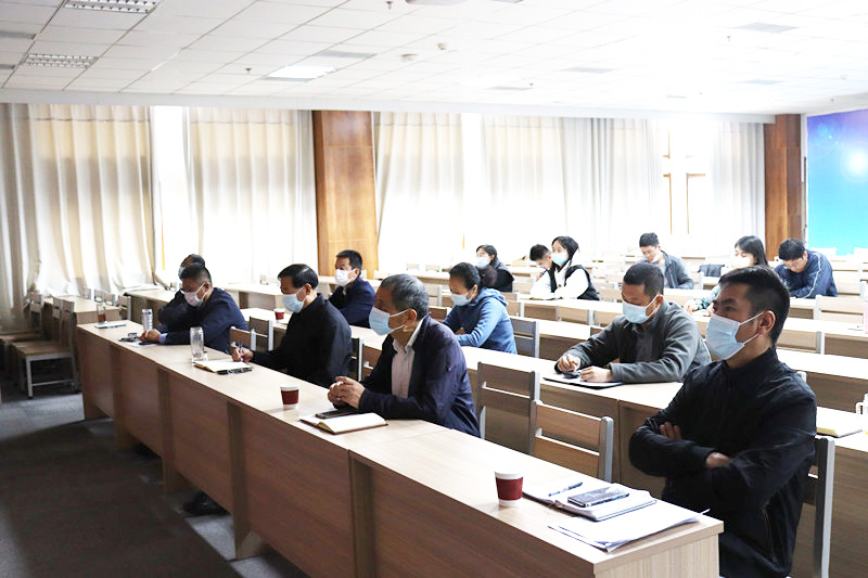 学校领导班子和行政党支部收看现场