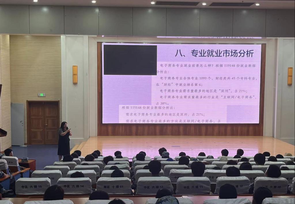 电商学院各专业负责人通过生动的讲解和丰富的案例分享,从专业特色、课程设置、就业方向、专业学习资源的类型及位置、学习方法等进行了详细介绍,让新生们对所学专业有了全面而深入地了解,激发了他们的学习兴趣和动力。活动还邀请了在学业、实习、就业等方面表现突出的优秀生,围绕目标制定、学习方法、时间管理、社团参与、实习实践等多个方面,与新生们分享了经验和做法。在交流互动环节,新生们踊跃提问的同时,也纷纷表示要珍惜大学时光,努力学习专业知识,不断提升自己的综合素质和职业技能,为未来职业生涯做好充分准备。