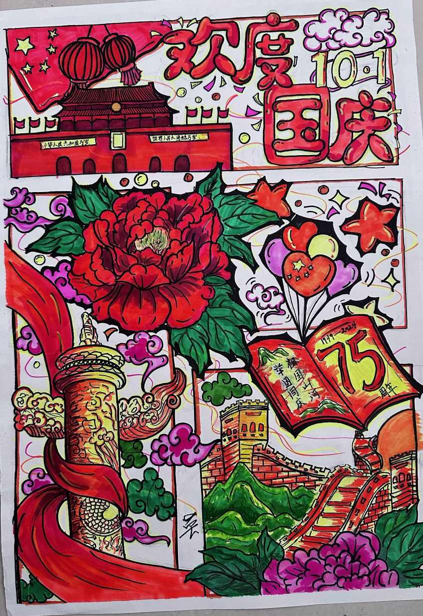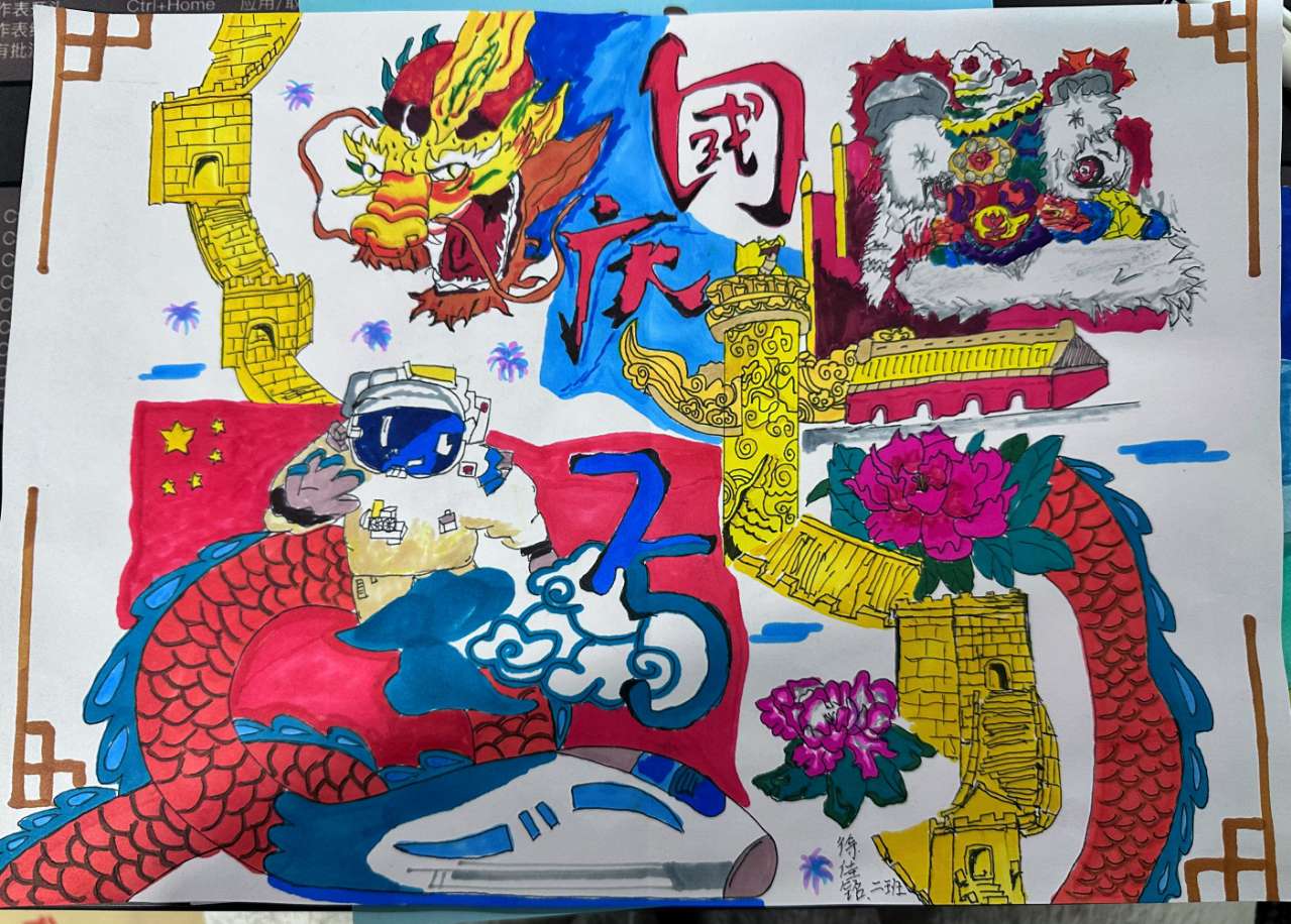 活动中,一幅幅色彩斑斓的绘画作品,展现了祖国的壮丽山河、革命历史的波澜壮阔以及新时代的蓬勃发展;书法作品则以刚劲有力的笔触,书写着红色经典诗词和革命口号,传递出强烈的爱国情怀。作品中,有的描绘了五星红旗在风中飘扬的场景,鲜艳的色彩和生动的画面让人感受到祖国的强大和荣耀,有的以革命英雄为主题,通过细腻的笔触展现了英雄们的英勇无畏和奉献精神。学生们用自己的独特视角和艺术表达,真诚诠释着红色精神的深刻内涵。