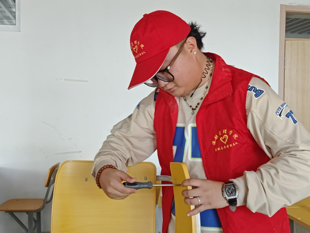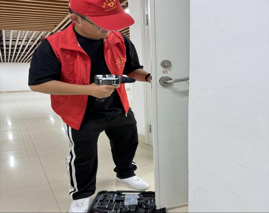 为更好的为学生服务,学院给配备了专业工具箱,志愿者们有求必应利用业务时间修理同学们送来的个人物品以及上门开展维修服务,志愿者们穿红色马甲认真检查每一件损坏的物品,讨论并制定解决方案,团队成员协作紧密各司其职,秉承志愿服务精神,用实际行动为师生提供更好、更多的志愿服务,让友爱与温暖在校园里传递不息。